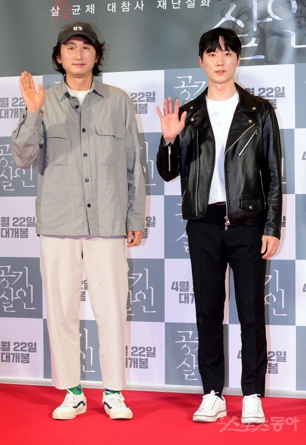 18일 오후 서울 용산구 CGV용산아이파크몰점에서 열린 영화 ‘공기살인’ VIP시사회에 참석한 배우 김영웅과 장해송이 포즈를 취하고 있다.