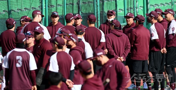 19일 인천 SSG 랜더스필드에서 ‘2022 신한은행 SOL KBO리그’ SSG 랜더스와 키움 히어로즈의 경기가 열린다. 경기 전 키움 선수들이 훈련을 준비하고 있다.