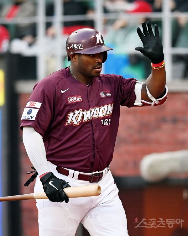 19일 인천 SSG 랜더스필드에서 ‘2022 신한은행 SOL KBO리그’ SSG 랜더스와 키움 히어로즈의 경기가 열렸다. 2회초 무사에서 키움 푸이그가 솔로 홈런을 쏘아 올린 후 환호하고 있다.