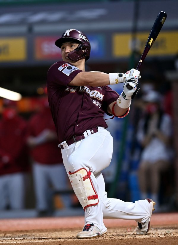 19일 인천 SSG 랜더스필드에서 ‘2022 신한은행 SOL KBO리그’ SSG 랜더스와 키움 히어로즈의 경기가 열렸다. 3회초 2사 만루에서 키움 박동원이 만루 홈런을 쏘아 올리고 있다.