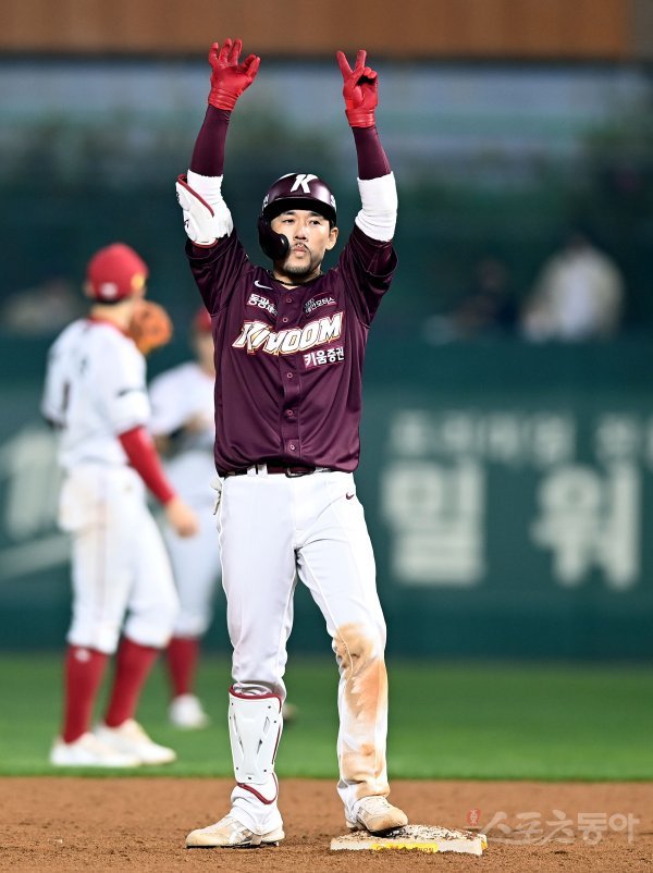 19일 인천 SSG 랜더스필드에서 ‘2022 신한은행 SOL KBO리그’ SSG 랜더스와 키움 히어로즈의 경기가 열렸다. 9회초 2사 2루에서 키움 이용규가 1타점 2루타를 날린 후 세리머니를 펼치고 있다. 이날 2루타를 기록하며 역대 15번째 2000안타를 달성했다.