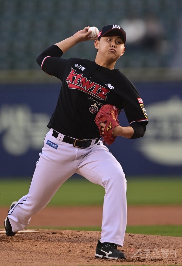 20일 서울 잠실야구장에서 열린 ‘2022 신한은행 SOL KBO리그’ LG 트윈스와 KT 위즈의 경기에서 선발 투수로 마운드에 오른 KT 소형준이 역투하고 있다.