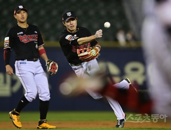 20일 서울 잠실야구장에서 열린 ‘2022 신한은행 SOL KBO리그’ LG 트윈스와 KT 위즈의 경기에서 7회말 1사 LG의 내야 땅볼을 잡은 KT 심우준이 1루로 송구하고 있다.