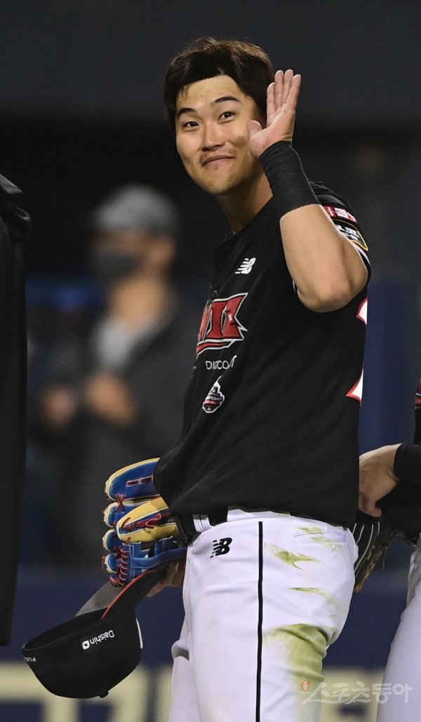 20일 서울 잠실야구장에서 열린 ‘2022 신한은행 SOL KBO리그’ LG 트윈스와 KT 위즈의 경기에서 5-3으로 승리한 KT 배정대가 LG 선수를 향해 인사하고 있다.