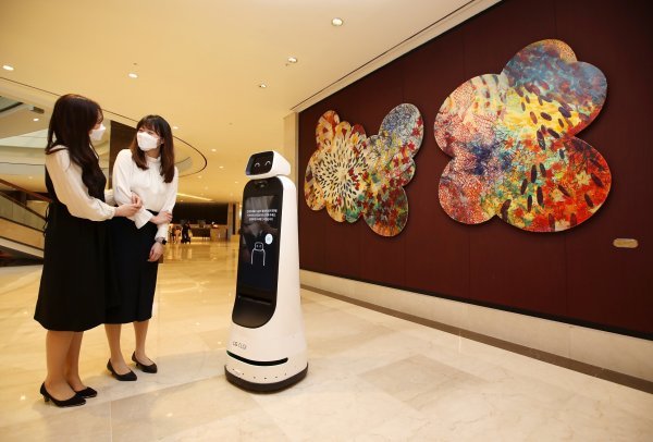 서울 잠실 롯데호텔 월드는 로비에서 고객을 맞는 ‘LG 클로이 가이드봇’(이하 가이드봇)을 도입했다.전시 예술작품 해설 도슨트 기능도