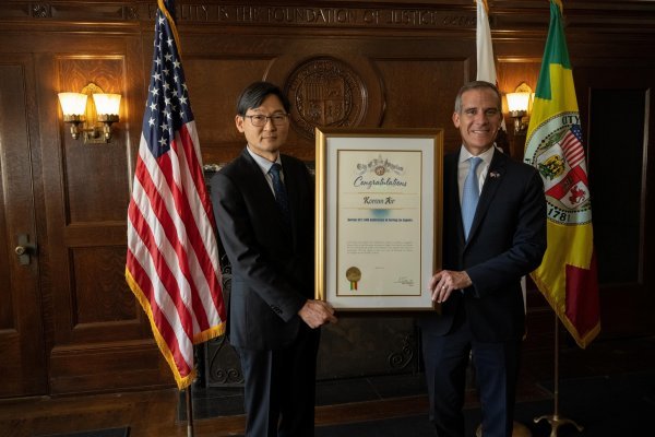 한편 대한항공 미주 노선 취항 50주년을 기념해 18일 오후(현지시간) 에릭 가세티 LA 시장은 대한항공에 감사패를 전달했다.