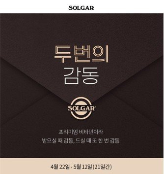 비타민 전문 브랜드 한국솔가는 가정의 달을 맞아 12일까지 ‘두 번의 감동’ 캠페인을 진행한다. 솔가 베스트셀러 제품 할인 프로모션도 진행