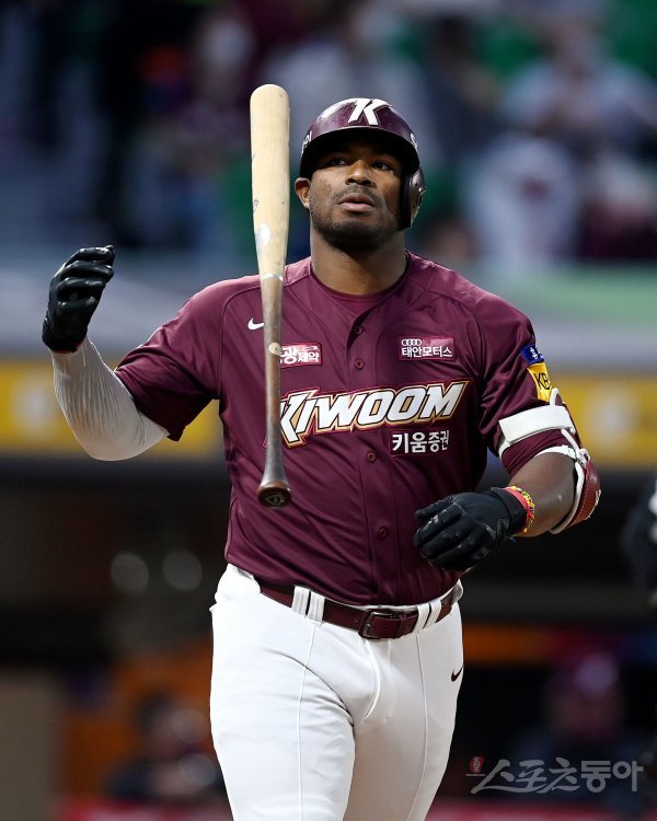 21일 인천 SSG 랜더스필드에서 ‘2022 신한은행 SOL KBO리그’ SSG 랜더스와 키움 히어로즈의 경기가 열렸다. 4회초 1사 1루에서 키움 푸이그가 플라이 아웃 후 아쉬워하고 있다.