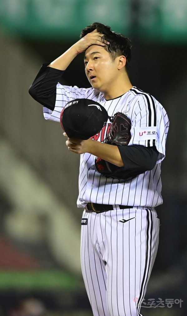 21일 서울 잠실야구장에서 열린 ‘2022 신한은행 SOL KBO리그’ LG 트윈스와 KT 위즈의 경기에서 5회초 2사 1, 2루 상황에서 LG 송승기가 마운드를 내려가고 있다.