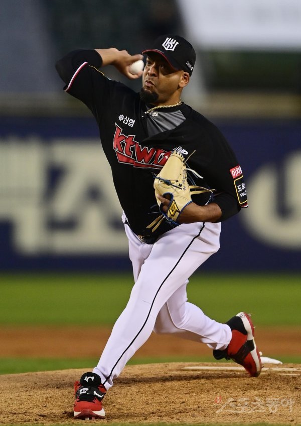 21일 서울 잠실야구장에서 열린 ‘2022 신한은행 SOL KBO리그’ LG 트윈스와 KT 위즈의 경기에서 선발 투수로 마운드에 오른 KT 데스파이네가 역투하고 있다.