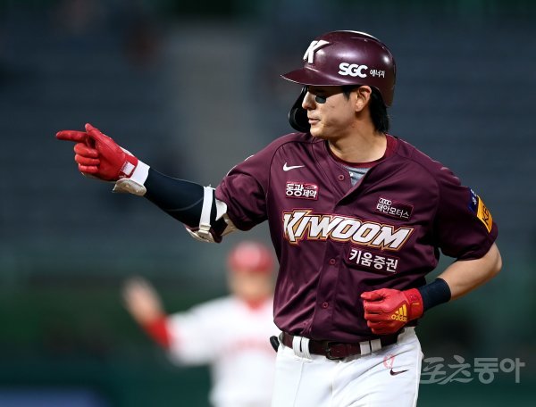 21일 인천 SSG 랜더스필드에서 ‘2022 신한은행 SOL KBO리그’ SSG 랜더스와 키움 히어로즈의 경기가 열렸다. 8회초 1사 2루에서 키움 이정후가 1타점 적시타를 날린 후 세리머니를 펼치고 있다.