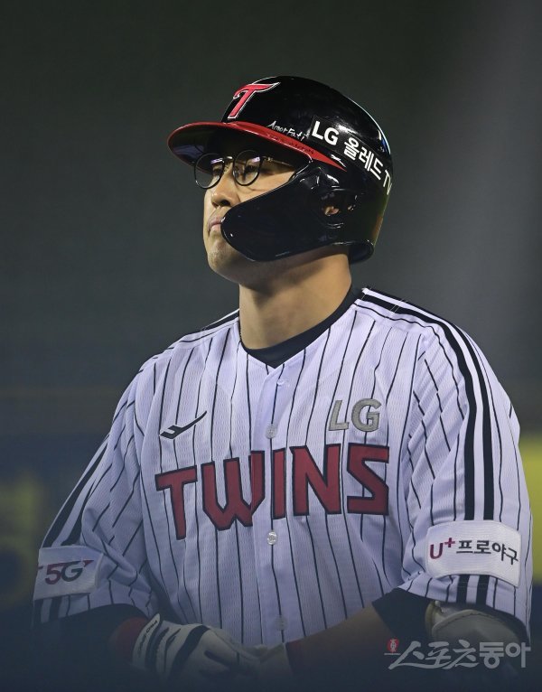 21일 서울 잠실야구장에서 열린 ‘2022 신한은행 SOL KBO리그’ LG 트윈스와 KT 위즈의 경기에서 5회말 2사 만루 LG 채은성이 땅볼로 아웃되며 아쉬워하고 있다.