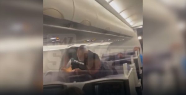 마이크 타이슨이 여객기 뒷좌석 승객을 폭행하는 장면. TMZ영상 캡처.
