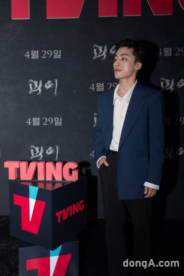 구교환이 22일 오후 진행된 티빙 오리지널 ‘괴이’ 제작발표회에서 포즈를 취하고 있다.