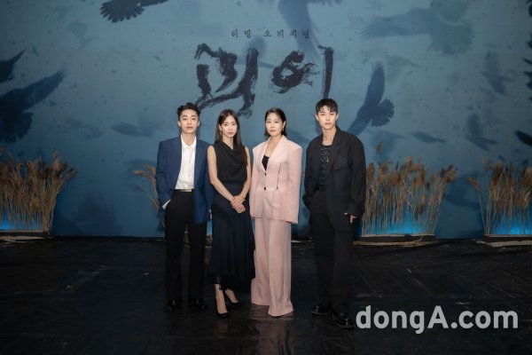 배우 구교환, 신현빈, 김지영, 곽동연이 22일 오후 진행된 티빙 오리지널 ‘괴이’ 제작발표회에서 포즈를 취하고 있다.