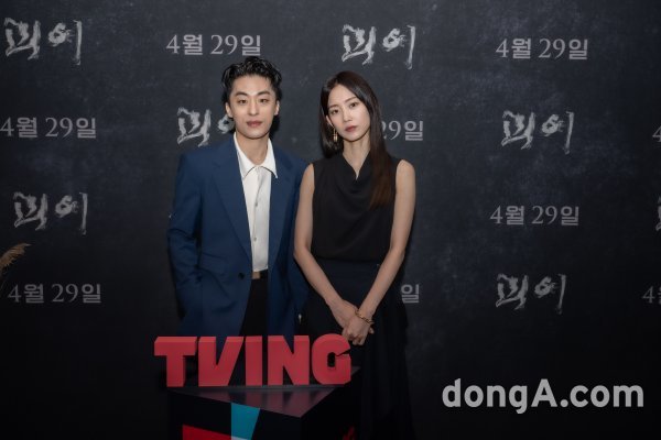배우 구교환, 신현빈이 22일 오후 진행된 티빙 오리지널 ‘괴이’ 제작발표회에서 포즈를 취하고 있다.
