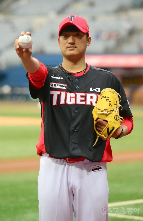 24일 서울 고척스카이돔에서 ‘2022 신한은행 MY CAR KBO리그’ KIA 타이거즈와 키움 히어로즈 경기가 열린다. KIA로 트레이드 된 김도현이 포토타임을 갖고 있다.