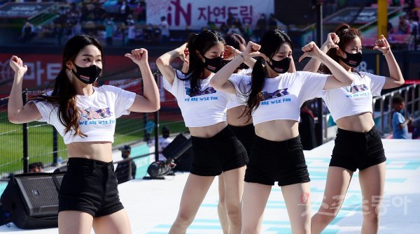 24일 경기도 수원 kt위즈파크에서 ‘2022 신한은행 SOL KBO리그’ kt 위즈와 NC 다이노스의 경기가 열렸다. kt 치어리더가 화려한 공연을 펼치고 있다.