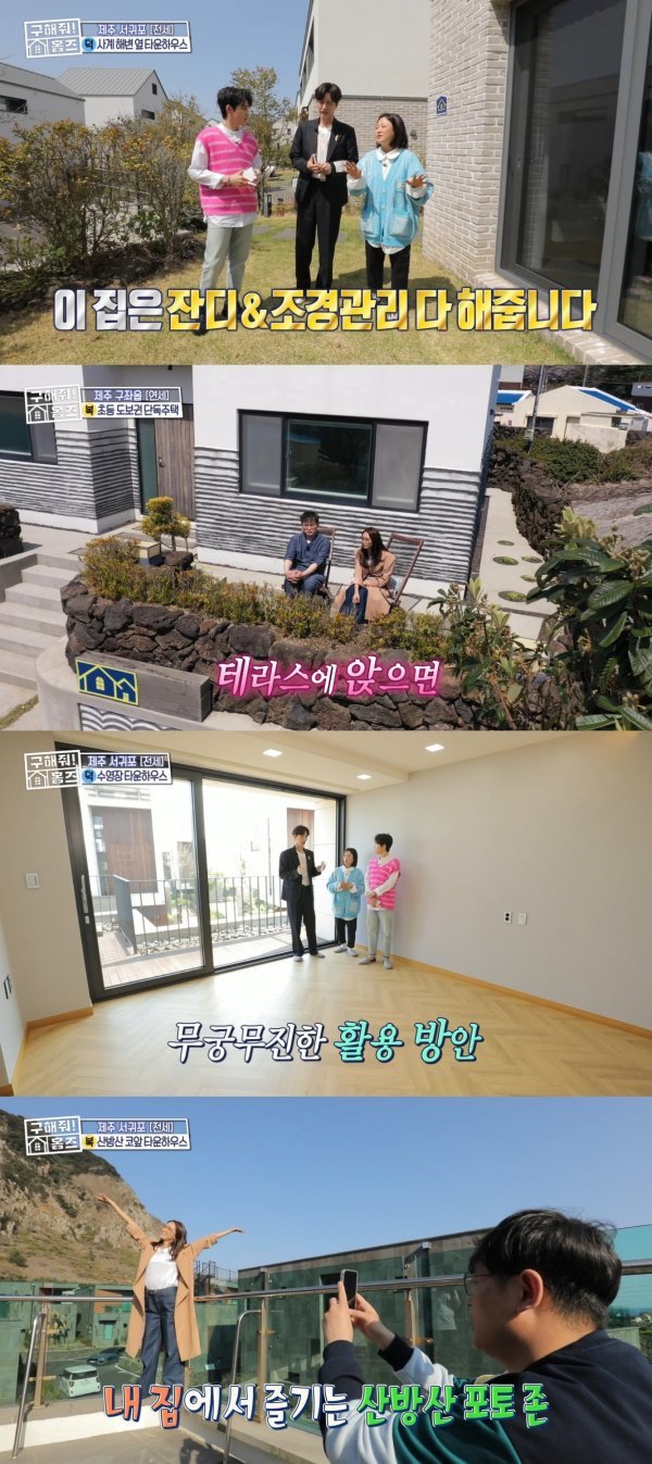 두 번째 매물은 서귀포시 안덕면 사계리의 ‘산방산내맞선’이었다. 산방산에서 도보 3분 거리에 위치한 타운하우스로 푸른 잔디마당과 다양한 정원수가 눈길을 끌었다. 널찍한 거실과 주방에는 대리석 바닥이 깔려있었으며, 최신 전자제품들이 기본옵션으로 주어졌다. 2층의 널찍한 베란다에서는 산방산을 바라보며 힐링할 수 있었다.