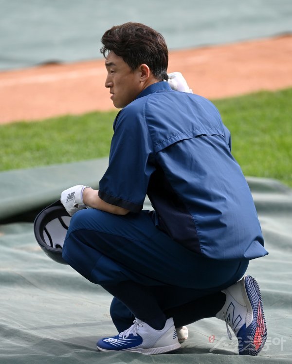 26일 서울 잠실야구장에서 ‘2022 신한은행 MY CAR KBO리그’ NC 다이노스와 두산 베어스 경기가 열린다. 경기 전 NC 손아섭이 훈련 중 무언가를 바라보고 있다.