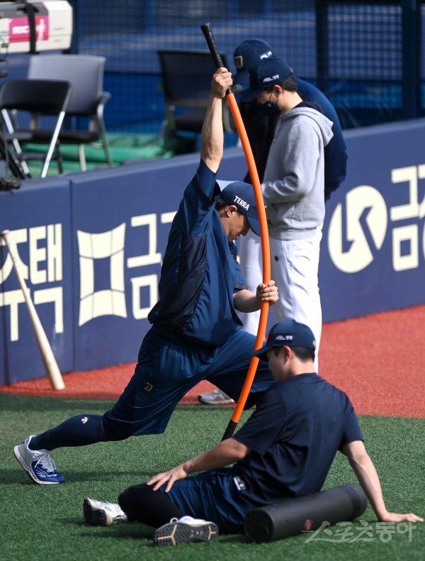 26일 서울 잠실야구장에서 ‘2022 신한은행 MY CAR KBO리그’ NC 다이노스와 두산 베어스 경기가 열린다. 경기 전 NC 손아섭이 몸을 풀고 있다.