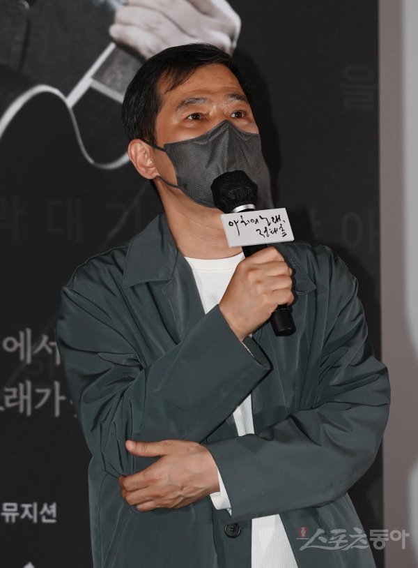 감독 고영재가 26일 서울 용산구 CGV용산아이파크몰점에서 열린 영화 ‘아치의 노래, 정태춘’ 언론시사회 무대인사에서 포즈를 취하고 있다.