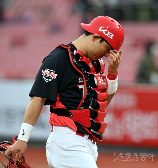 26일 경기도 수원 kt위즈파크에서 ‘2022 신한은행 SOL KBO리그’ kt 위즈와 KIA 타이거즈의 경기가 열렸다. 1회말 2사 1, 3루에서 KIA 박동원이 2루 송구 실책을 범한 후 아쉬워하고 있다.
