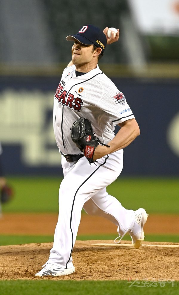 26일 서울 잠실야구장에서 ‘2022 신한은행 MY CAR KBO리그’ NC 다이노스와 두산 베어스 경기가 열렸다. 선발 투수로 등판한 두산 스탁이 역투하고 있다.