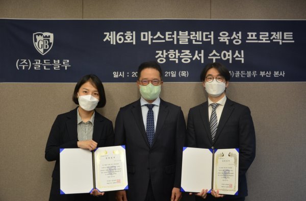 골든블루가 최근 부산 사무소에서 ‘마스터블렌더 육성 프로젝트’ 장학증서 수여식을 진행했다.