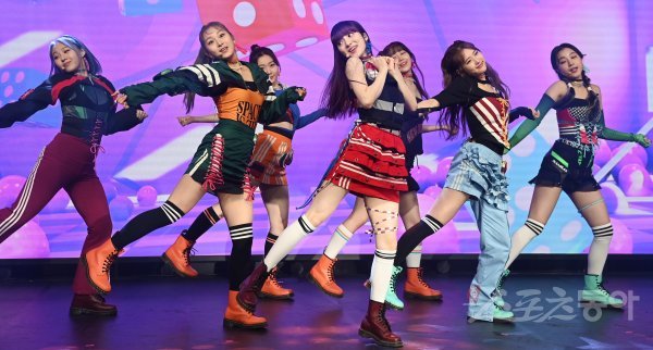 그룹 아이칠린이 27일 서울 마포구 서교동 구름아래소극장에서 열린 첫 번째 미니앨범 ‘Bridge of Dreams‘ 발매 기념 프레스 쇼케이스에서 타이틀곡 ’꼭꼭 숨어라‘ 무대를 펼치고 있다.