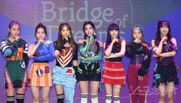 그룹 아이칠린이 27일 서울 마포구 서교동 구름아래소극장에서 열린 첫 번째 미니앨범 ‘Bridge of Dreams‘ 발매 기념 프레스 쇼케이스에서 포즈를 취하고 있다.
