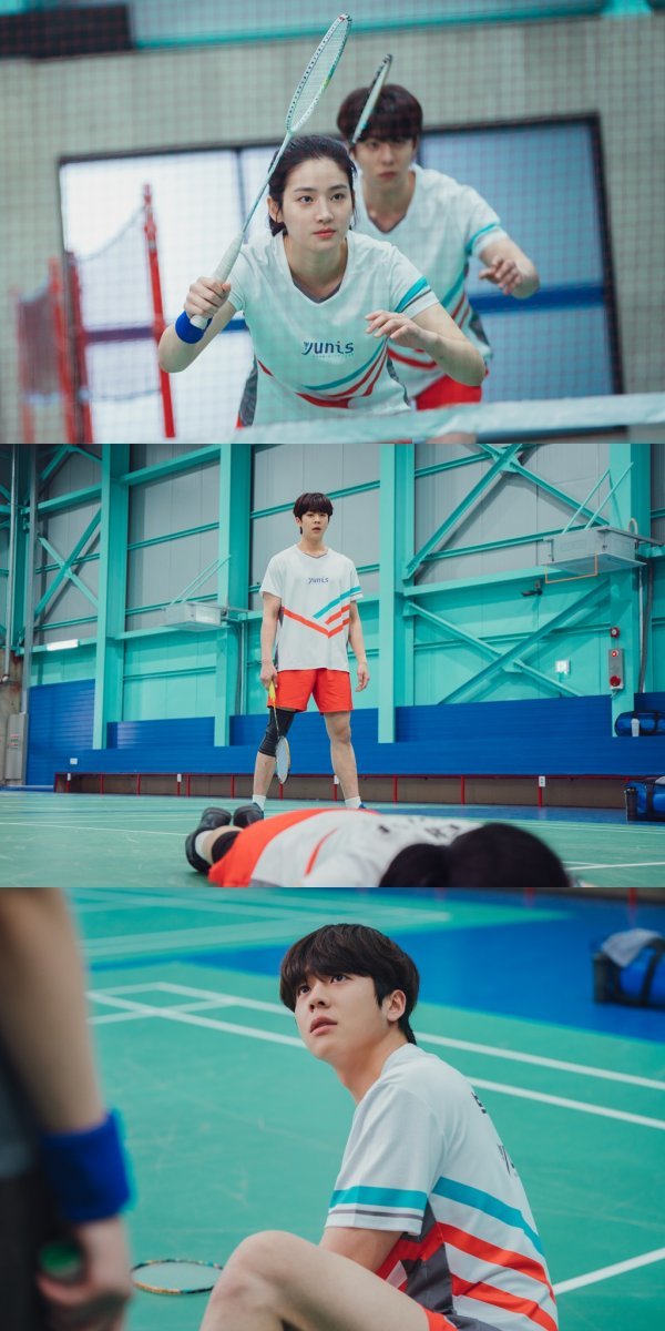 KBS2 수목드라마 ‘너에게 가는 속도 493km’ 박주현, 채종협 복식조가 첫 경기를 치른다.