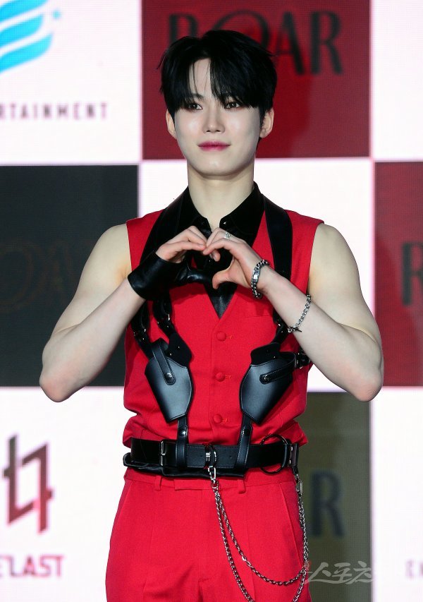 엘라스트(E‘LAST) 미니 3집 ‘로어’(ROAR) 쇼케이스가 27일 오후 서울 청담동 일지아트홀에서 열렸다. 엘라스트 승엽이 카메라를 향해 포즈를 취하고 있다.