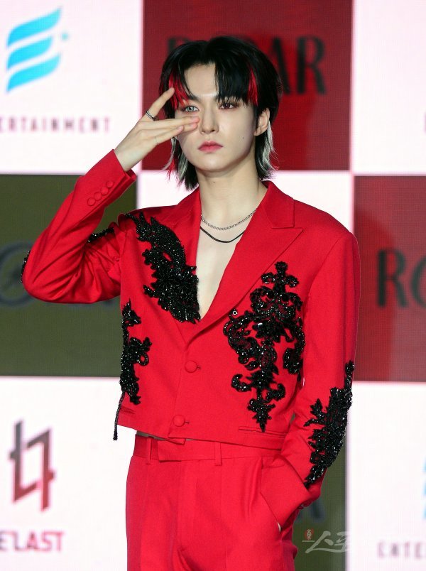 엘라스트(E‘LAST) 미니 3집 ‘로어’(ROAR) 쇼케이스가 27일 오후 서울 청담동 일지아트홀에서 열렸다. 엘라스트 로민이 카메라를 향해 포즈를 취하고 있다.
