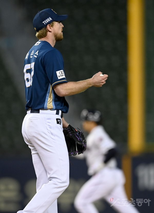 27일 서울 잠실야구장에서 ‘2022 신한은행 MY CAR KBO리그’ NC 다이노스와 두산 베어스 경기가 열렸다. NC 선발 파슨스가 3회말 2사 2,3루 두산 김재환에게 우월 스리런 홈런을 허용하고 있다.