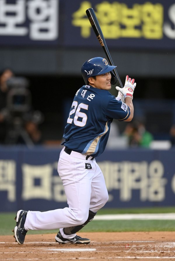 27일 서울 잠실야구장에서 ‘2022 신한은행 MY CAR KBO리그’ NC 다이노스와 두산 베어스 경기가 열렸다. 2회초 2사 2,3루 NC 박대온이 역전 2타점 적시타를 치고 있다.