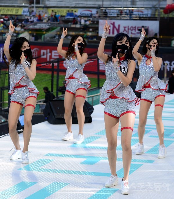 27일 경기도 수원 kt위즈파크에서 ‘2022 신한은행 SOL KBO리그’ kt 위즈와 KIA 타이거즈의 경기가 열렸다. kt 치어리더가 화려한 공연을 선보이고 있다.