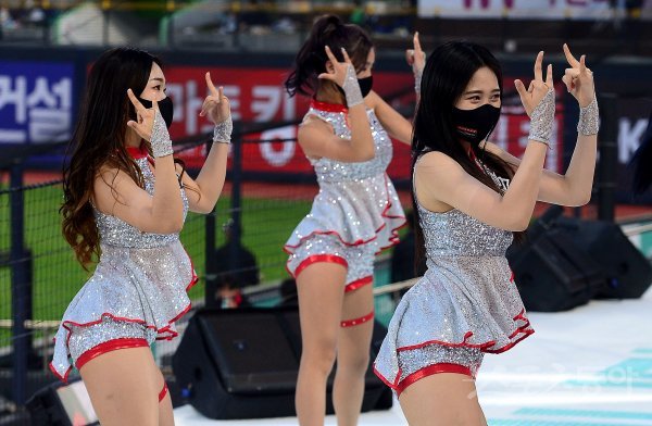 27일 경기도 수원 kt위즈파크에서 ‘2022 신한은행 SOL KBO리그’ kt 위즈와 KIA 타이거즈의 경기가 열렸다. kt 치어리더가 화려한 공연을 선보이고 있다.
