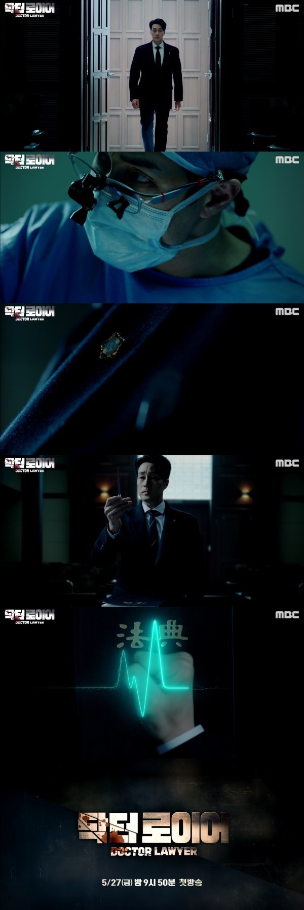 그렇게 법정 한가운데에 선 소지섭은 가슴에는 변호사 배지가 빛나고 있다. 이때 소지섭이 슈트 포켓에서 수술용 메스를 꺼낸다. 그리고 수술용 메스로 법전을 푹 찌른다. 그의 행동에는 한치의 망설임도, 흔들림도 없다. 의사이자 변호사, 변호사이자 의사인 소지섭의 강렬한 눈빛 위로 ‘닥터로이어’ 타이틀이 강렬하게 등장하며 1차 티저는 마무리된다.