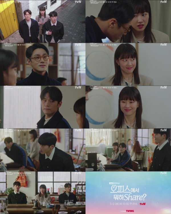 tvN 드라마 프로젝트 오프닝(O’PENing)의 첫 번째 작품 ‘오피스에서 뭐하Share?’(극본 최보윤 연출 김강규, 약칭 ‘오셰어’)가 28일 세상 살 떨리는 커피 주문 현장이 담긴 선공개 영상을 공개했다. 아찔한 하룻밤을 보낸 박현우(이학주 분)와 전 남자친구 전진석(정재광 분) 사이, 작동 오류를 일으키는 위다인(하윤경 분)의 모습이 웃음을 유발한다.