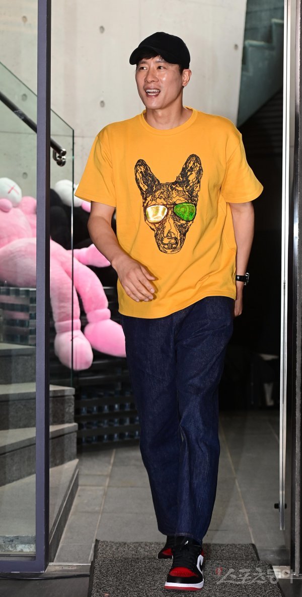 방송인 우지원이 28일 서울 강남구 청담동 쇼룸에서 열린 한 패션 브랜드의 2022 신상 런칭 포토월에 입장하고 있다.