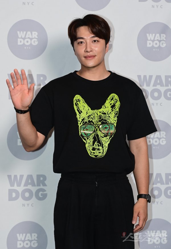 배우 민우혁이 28일 서울 강남구 청담동 쇼룸에서 열린 한 패션 브랜드의 2022 신상 런칭 포토월에서 포즈를 취하고 있다.