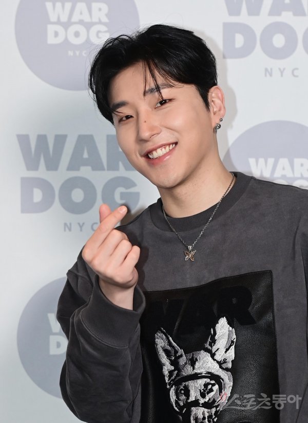그룹 B.A.P 문종업이 28일 서울 강남구 청담동 쇼룸에서 열린 한 패션 브랜드의 2022 신상 런칭 포토월에서 포즈를 취하고 있다.