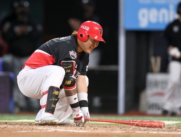 28일 수원KT위즈파크에서 ‘2022 신한은행 MY CAR KBO리그’ KIA 타이거즈와 KT 위즈 경기가 열렸다. 4회초 1사 KIA 최형우가 삼진 아웃을 당한 후 아쉬워하고 있다.