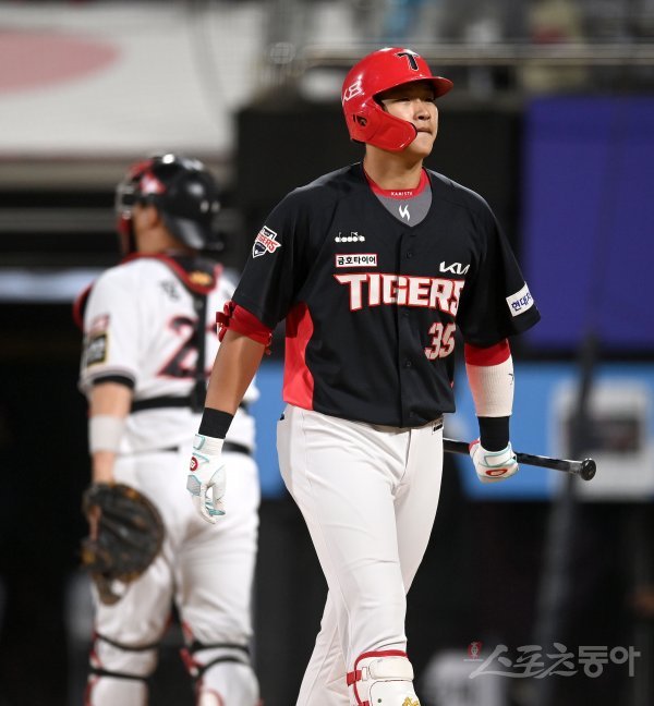 28일 수원KT위즈파크에서 ‘2022 신한은행 MY CAR KBO리그’ KIA 타이거즈와 KT 위즈 경기가 열렸다. 8회초 2사 만루 상황에서 KIA 김석환이 삼진 아웃을 당한 후 아쉬워하고 있다.