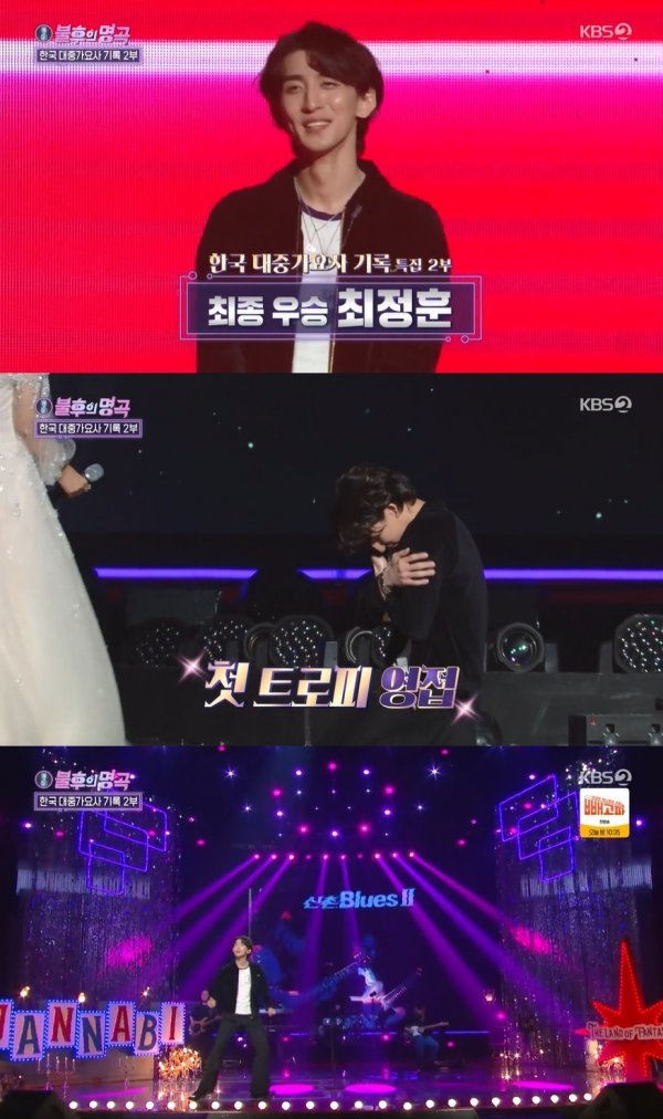 역대급 무대에 판정단도 응답, 최정훈은 첫 우승을 차지하며 ‘불후의 명곡’ 첫 우승과 함께 왕중왕전 티켓을 거머쥐었다. 최정훈은 무릎까지 꿇고 트로피를 안으며 기쁨을 만끽했다.