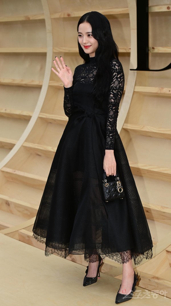 그룹 블랙핑크 지수가 30일 서울 서대문구 대현동 이화여자대학교에서 열린 한 프랑스 럭셔리 브랜드의 2022 가을 여성 컬렉션 패션쇼 포토월에서 포즈를 취하고 있다.