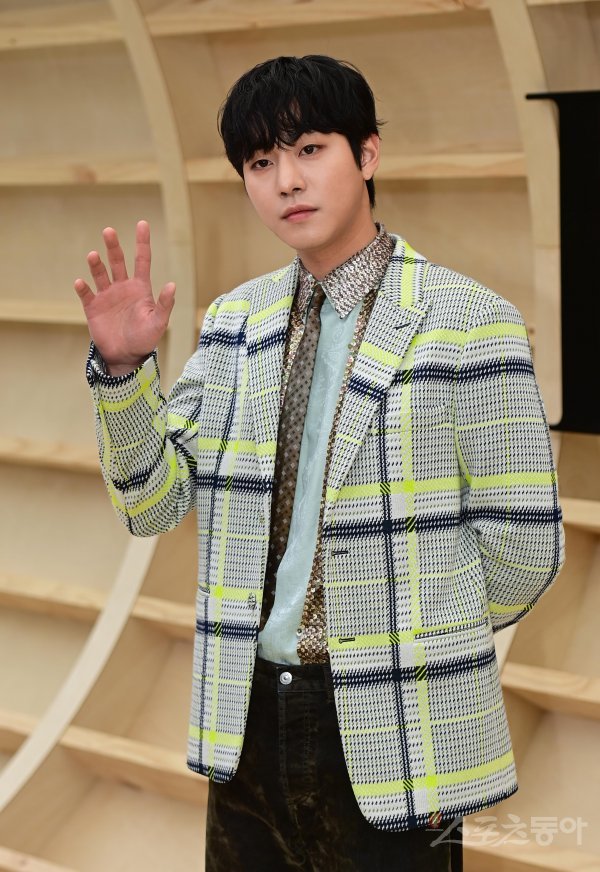 배우 안효섭이 30일 서울 서대문구 대현동 이화여자대학교에서 열린 한 프랑스 럭셔리 브랜드의 2022 가을 여성 컬렉션 패션쇼 포토월에서 포즈를 취하고 있다.