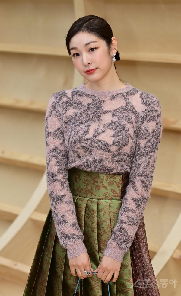 전 피겨스케이팅 선수 김연아가 30일 서울 서대문구 대현동 이화여자대학교에서 열린 한 프랑스 럭셔리 브랜드의 2022 가을 여성 컬렉션 패션쇼 포토월에서 포즈를 취하고 있다.