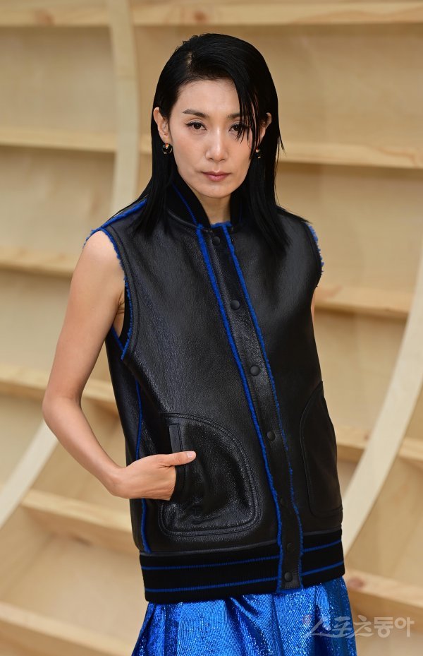 배우 김서형이 30일 서울 서대문구 대현동 이화여자대학교에서 열린 한 프랑스 럭셔리 브랜드의 2022 가을 여성 컬렉션 패션쇼 포토월에서 포즈를 취하고 있다.
